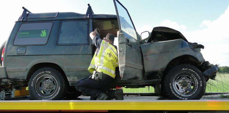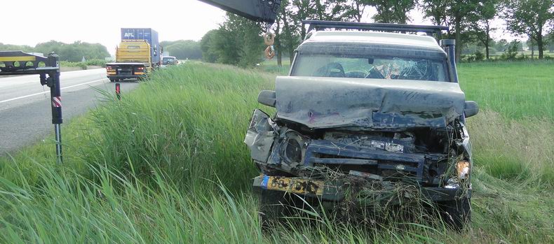 Zaterdag 14 juni 2014 A 37Li (ter hoogte van Gees) Landrover ramt achterzijde van Poolse vrachtwagencombinatie