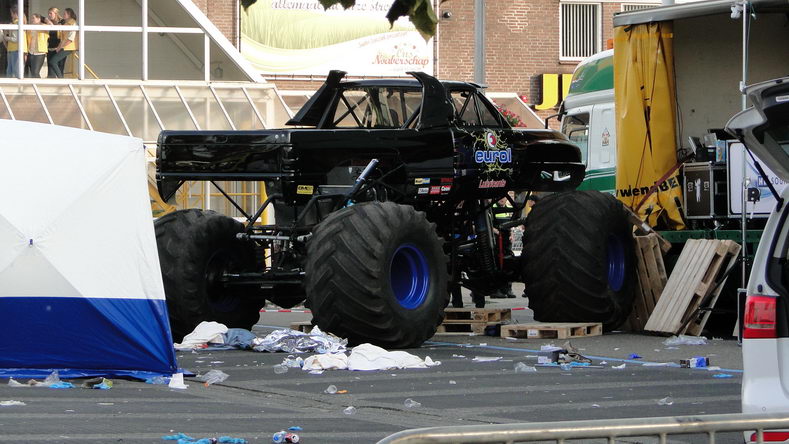 Zondag 28 september 2014 Haaksbergen (parkeerplaats aan de Stationsstraat): Monstertruck rijdt publiek in: doden en gewonden