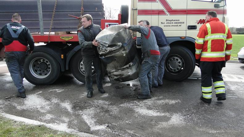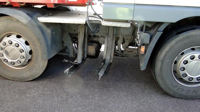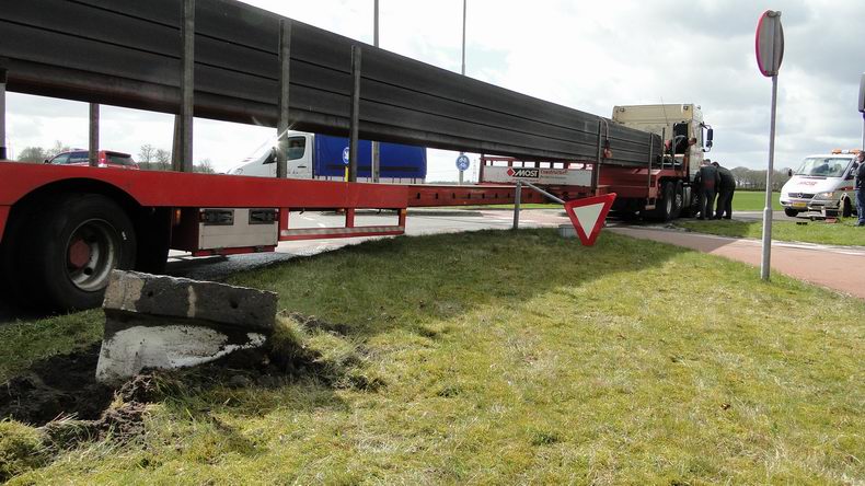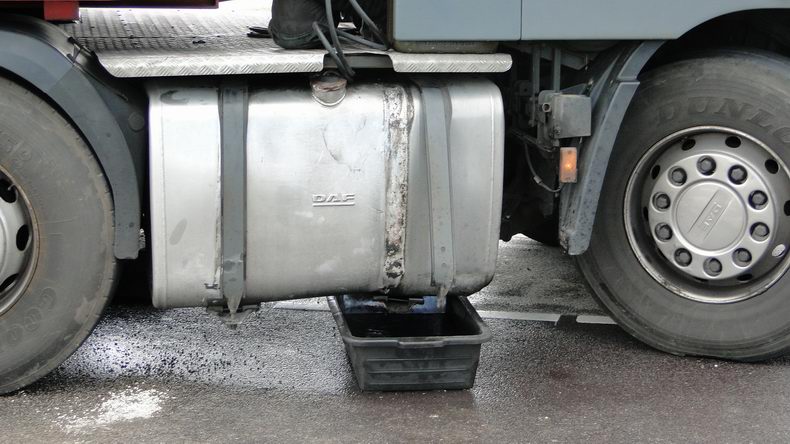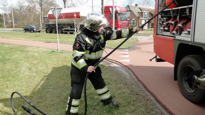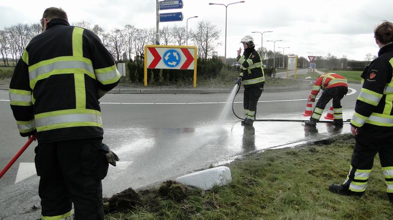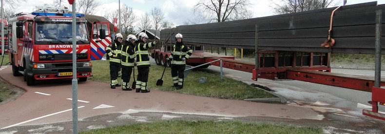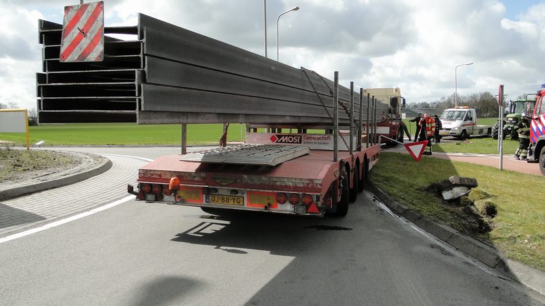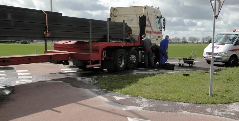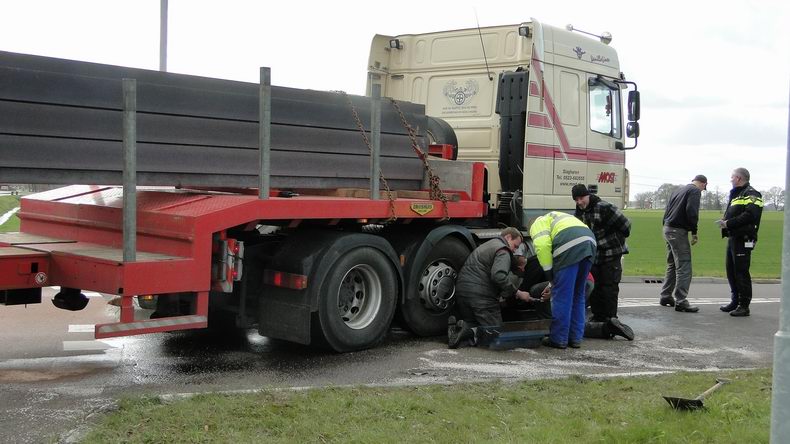 27 meter lange vrachtwagencombinatie rijdt brandstoftank lek