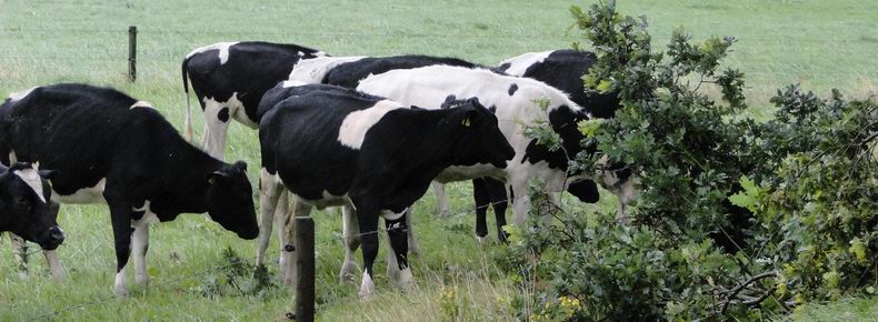 | Ook op de Herenstraat in Slagharen werd het verkeer gehinderd door grote losgerukte takken op fietspad en hoofdrijbaan en bleek er bovendien nog een flinke tak op het punt te staan op de rijbaan neer te storten. In dit geval werd het probleem opgelost door blusgroep De Krim, die het gevaar keerde met behulp van kettingzaag en hoogwerker. Een groepje aanstaande melkproducentes liet zich de eikenbladeren goed smaken. |