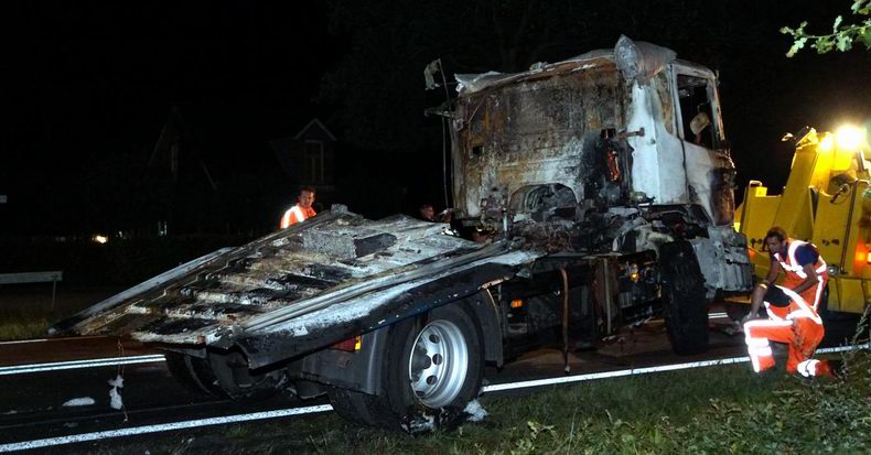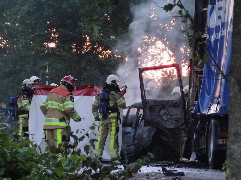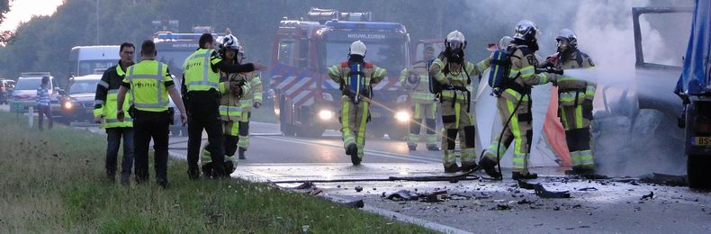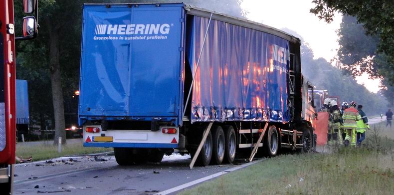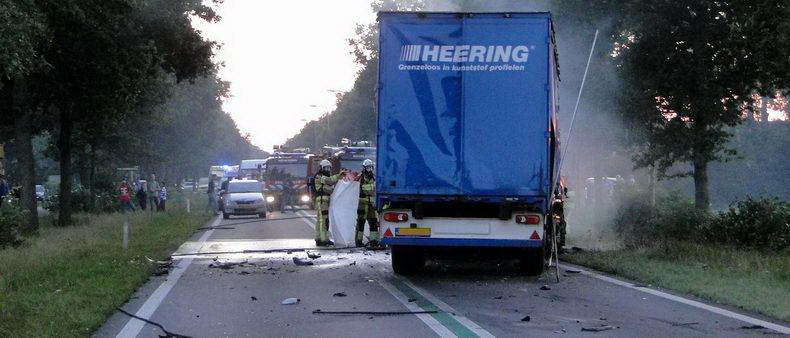 Automobilist komt om in vuurzee na frontale botsing met vrachtwagencombinatie