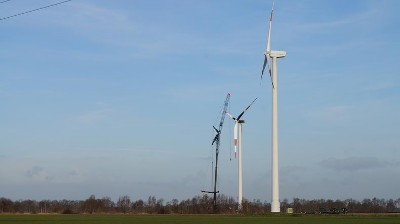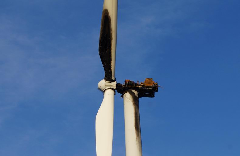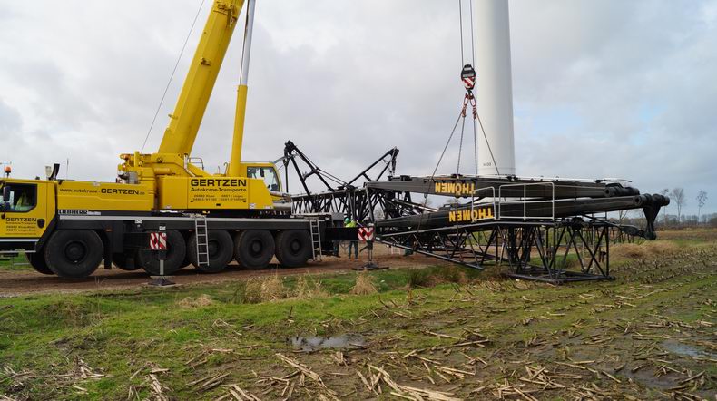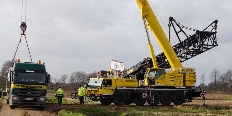 Dinsdag 2 februari 2016 e.v. Laar (D) (Zur Maate): Werkzaamheden ter demontage uitgebrande windturbine begonnen |