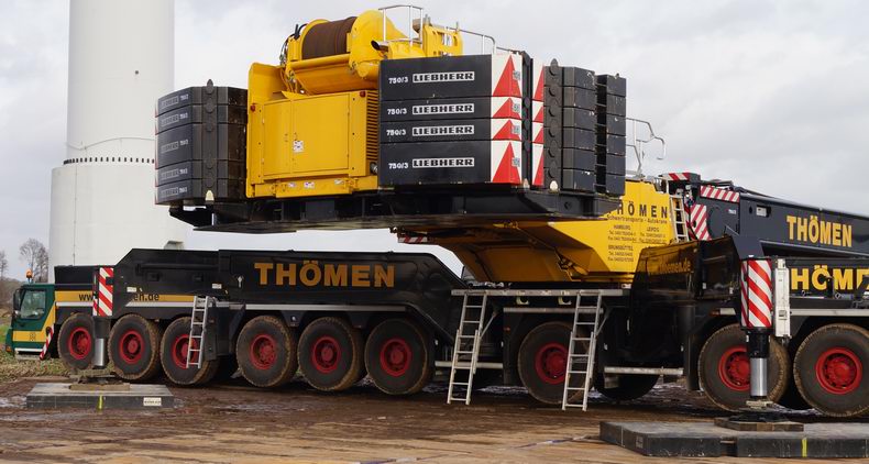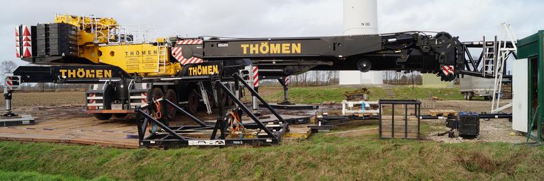 | Woensdagmorgen 3 februari: de 750 tons kraan is gemonteerd. Het weer is ideaal, maar naar verluidt zal er de rest van de dag nog weinig demontagewerk gebeuren. Als eerste zal de rotor verwijderd worden. Uit veiligheidsoverwegingen vanwege het rangeren met diepladers e.d. kan er vanaf nu alleen nog van een afstand van 4-500 m gefotografeerd worden. Men kon niet bij benadering zeggen hoe lang de klus ging duren, daar dit voor een belangrijk deel van de weersomstandighden af hangt. En de vooruitzichten voor de komende dagen zijn ongunstig; in het begin van de middag sloeg het weer al om en met name voor het weekend van 6 en 7 februari wordt slecht weer voorspeld. |