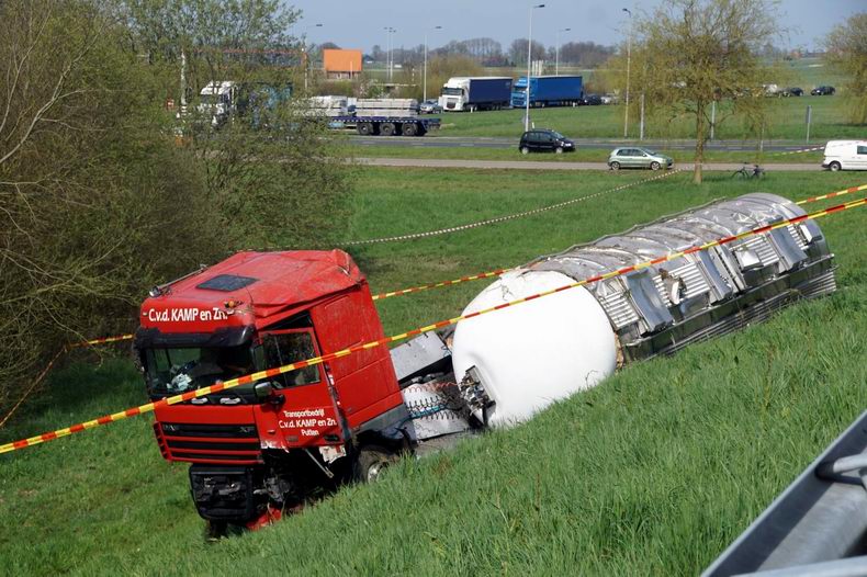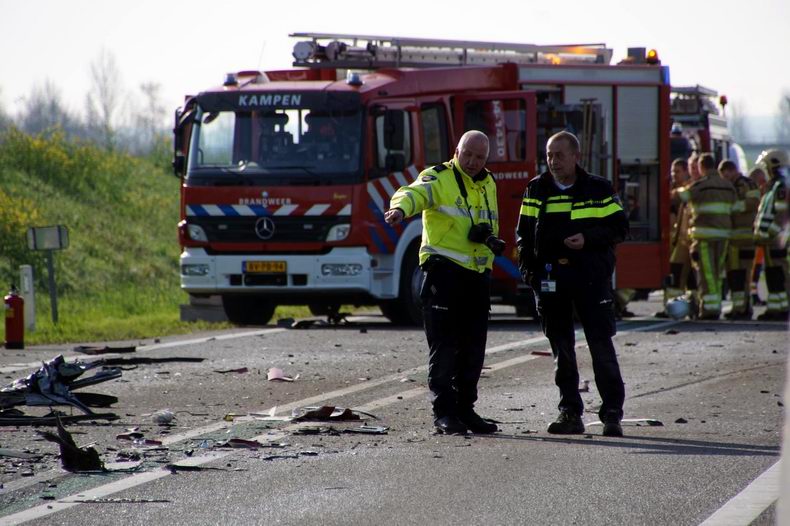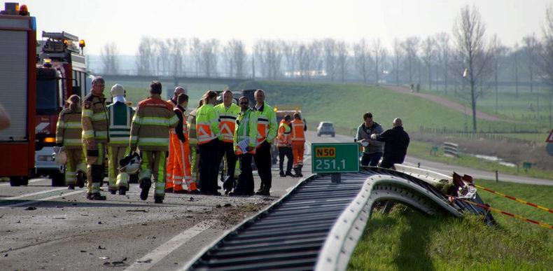 Woensdag 13 april 2016 N50 t.h.v. de Flevoweg bij Kampen: Automobilist komt om tijdens botsing met vrachtwagencombinatie |