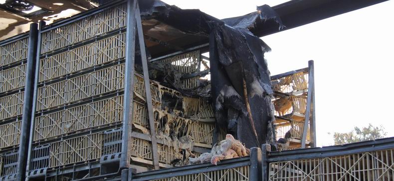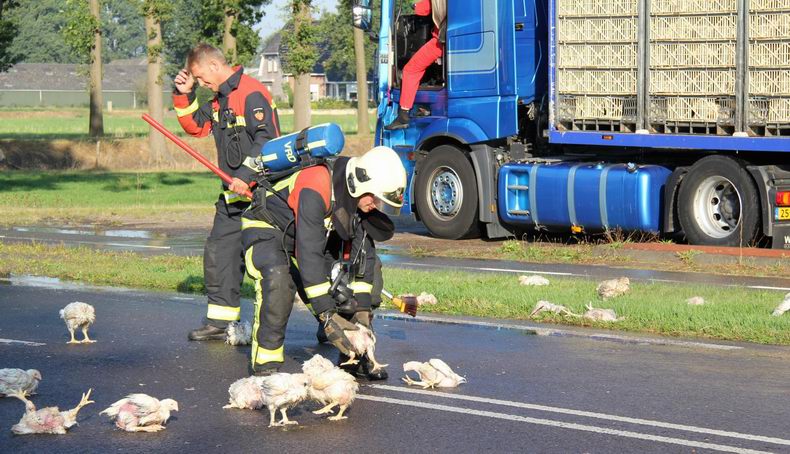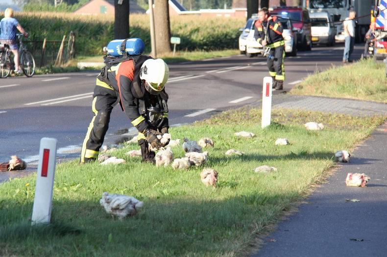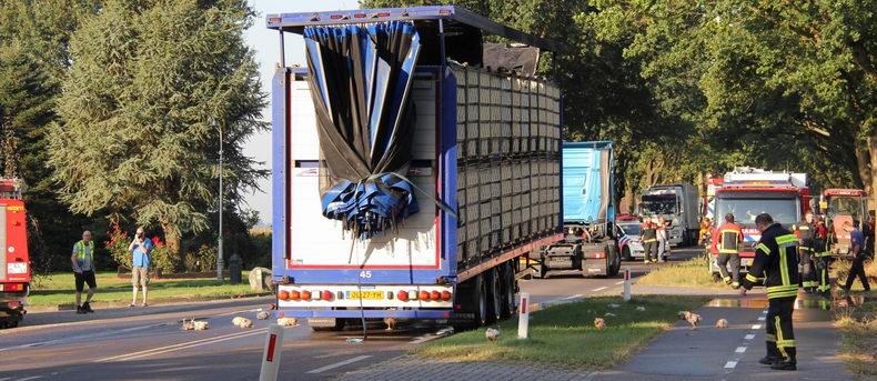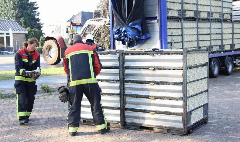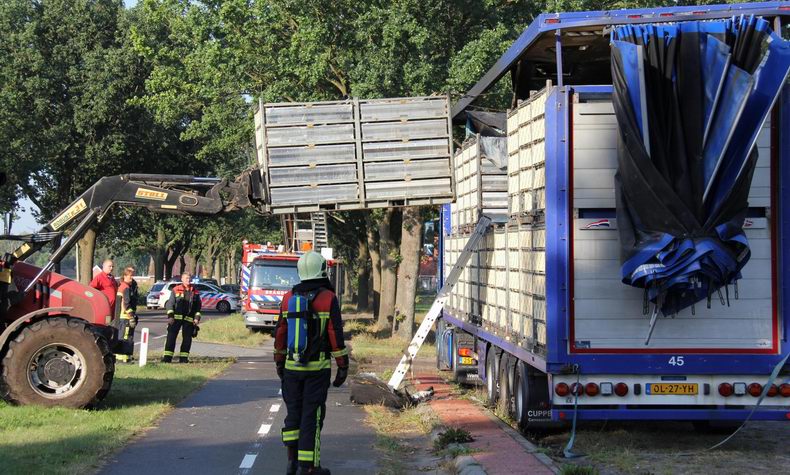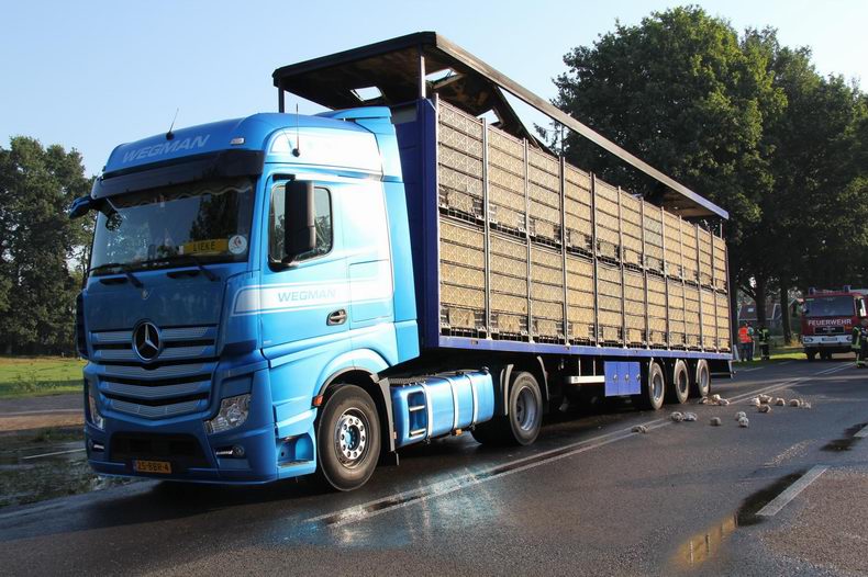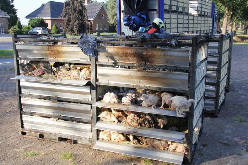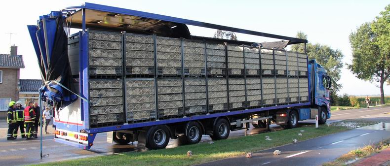 Brand in oplegger vol slachtkippen